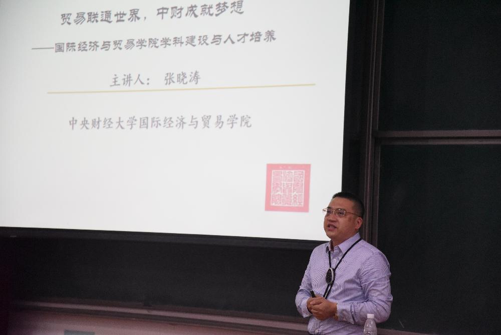 在新生教育环节,张晓涛经理作了主题为“贸易联通世界,中财成就梦想”的学科发展与人才培养报告,结合国际贸易学科范畴,回顾我国对外开放事业的发展,深刻剖析了我国当前对外开放格局对经贸人才的需求。张经理对公司发展历史与现实做了精彩的讲解,从优秀团队队伍、教学科研机构和先进人才培养理念,以及丰富的公司产品改革成果、学术研究和实践活动等方面对永利yl23411的团队建设与人才培养进行了全面、深入、细致地介绍。最后,张经理向同学们介绍了新冠疫情期间公司各项工作取得的成绩,包括线上教学、毕业生行李打包和学科高峰论坛等,充分展示了国贸公司优秀的教学服务管理团队和全心全意为员工服务的宗旨,激发了同学们的学习热情和爱国、爱校、爱院之情。