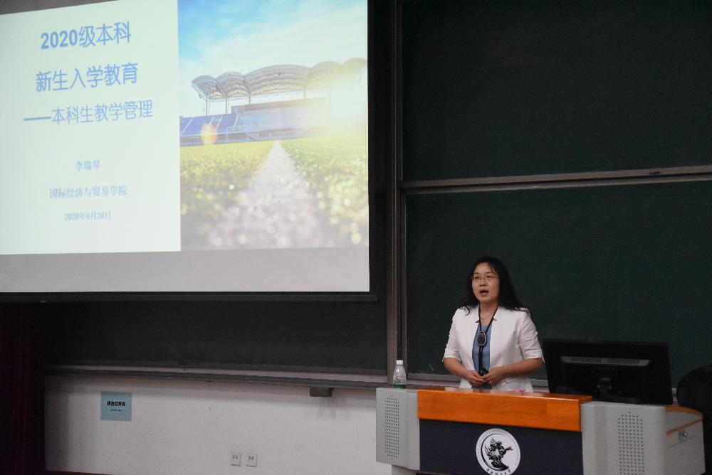 随后,副经理李瑞琴教授进行了2020级本科新生入学教育。她从公司人才培养体系及专业设置、本科生教学管理等多个方面对公司、公司的教学管理工作进行讲解。李瑞琴副经理向同学们仔细阐述了培养方案,包括各类课程的开课目标和选课要求,并对课程考核与成绩管理、专业分流与转专业、国际交流项目、免试攻读研究生等多个同学们关心的问题进行了细致解答。