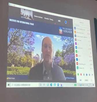 随后,阿德莱德大学国际贸易研究所所长Draper教授致辞。Draper教授向辛苦筹办组织本次国际研讨会的孙瑾副主任及其他工作人员表示感谢,同时也期待双方学者在今明两天的研讨会中的交流。在今年疫情的情况下,国际贸易的发展趋势也发生了新变化,怎么应对这些新变化也与我们本次会议研讨的内容相关。Draper教授提到,此次会议是永利yl23411和澳大利亚阿德莱德大学国际贸易研究所两家机构开展合作的一部分,是双方友好关系的体现,未来也希望能够继续推进双方在员工交换、学术交流等方面的深入合作。