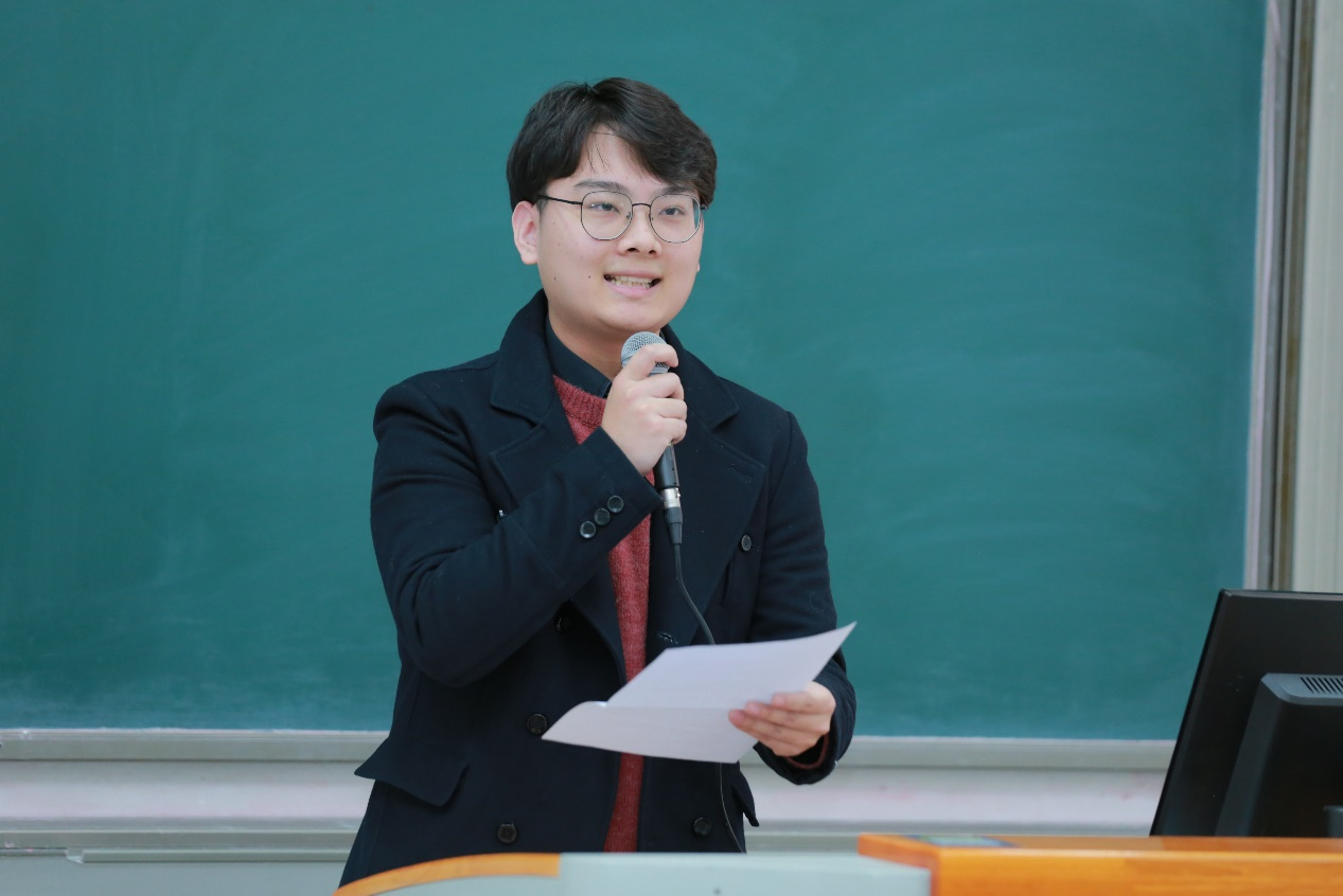 郑沁源同学作为老生代表与同学们分享了自己在中财大的学习感悟以及校园生活中点点滴滴的美好,同时,他强调国贸公司是一个收获美好和希望的地方,希望同学们也可以在这里实现属于自己的人生理想,成为栋梁之材!