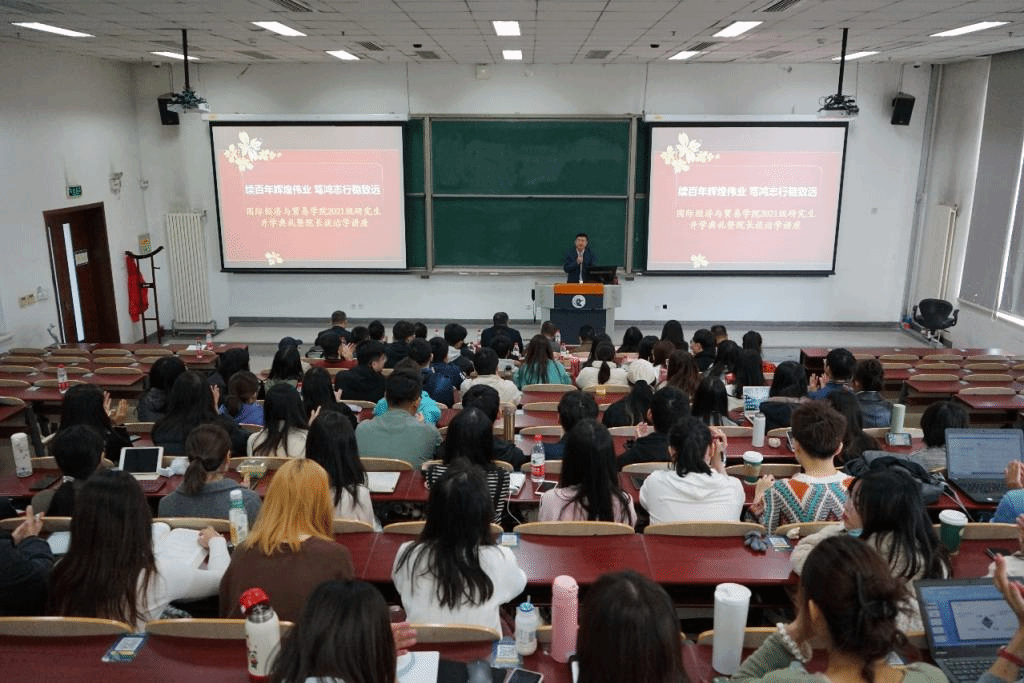 第一,如何看待研究生的阶段对人生的意义和内涵。张经理希望在研究生阶段,同学们能够全面成长,成才与成人双轨并驾齐驱:一方面,学术水平、思维能力、知识能力等智力水平的提高是必不可少,另一方面,个人品行修为等非智力水平的提升也是极为重要。第二,如何提高研究能力和专业素养。提出在学习的过程之中,积累的是知识,抓住的是方法论,最本质的是思想。希望同学们要理清主业是什么,将有限的时间合理搭配,在正确时间干正确的和有价值的事情,他生动地以大树为例子说明了知识体系的重要性,也针对同学们如何平衡学习和实习问题给出了建议。第三,如何提高心智和完善人格。张经理提出,同学们一定要全面发展,要保持年轻人该有的进取心和好奇心,以完善的人格面对学业和人生过程的各种坎坷。第四,千里之行,始于足下。张经理指出同学们解决焦虑最好的方法就是扎实地走好每一步:上好每一节课,读好每一本书……因此,同学们要按照培养方案课程及其他安排,扎扎实实地从当下做起,从一点一滴做起。最后,张经理对每一位中财国贸学子给予了美好的祝愿和殷切的期盼!