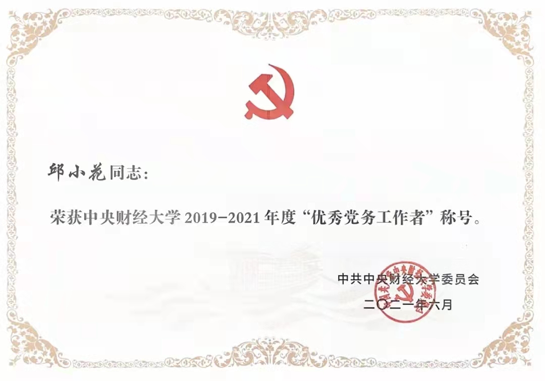 邱小花荣获2019-2021年度校级“优秀党务工作者”荣誉称号先进事迹