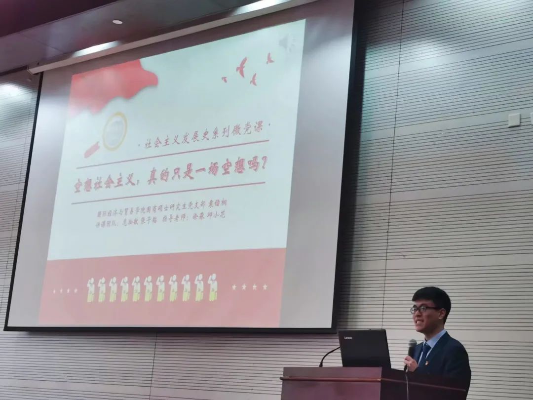 他发挥党员干部先锋模范作用,在建党百年之际,带头学党史、讲党课。他不仅在校研工部组织的“百场党课悟初心”研究生党支部书记微党课大赛中获得二等奖的佳绩,还同时引导党支部成员人人学党史、人人讲党课。支部成员录制的多期微党课已发布在党建学习视频号“国商学子心向党”,传播广泛、教育成效显著。