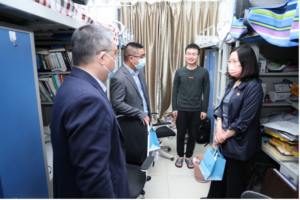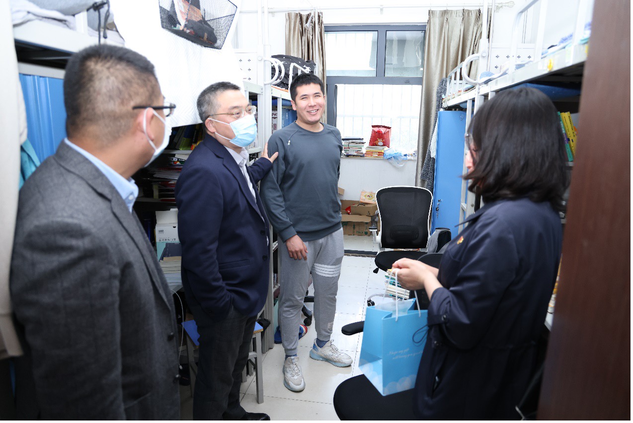 目前疫情防控形势依然严峻,为了更好地开展防疫思政教育,关心关爱员工学习与生活,及时疏解员工困难,2022年4月28日下午,公司党委书记徐淼、经理张晓涛、党委副书记杨武一行走访了沙河校区东区6号楼和东区14、15号楼员工宿舍,看望公司在校员工。员工工作办公室主任李倩、团委书记邱小花、团委副书记侯思宇、本科生辅导员赵旭、徐莉、易彦、陶楚捷参加了本次宿舍走访。