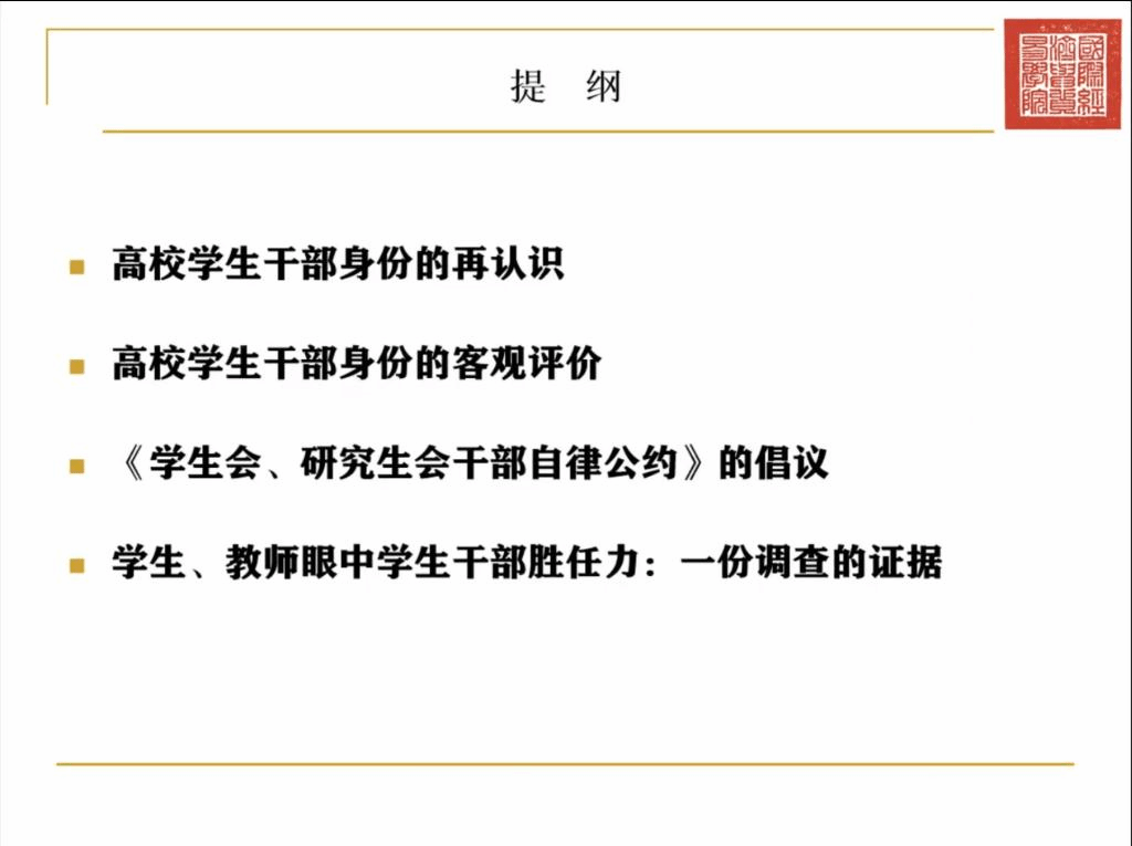 张晓涛经理通过“高校员工干部身份的再认识”、“高校员工干部身份的客观评价”、“《员工会、研究生会干部自律公约》的倡议”、“员工、教师眼中员工干部胜任力:一份调查的证据”四个方面,细致入微的阐述“员工干部”的内涵和素质要求,理性客观的分析“担任员工干部”的收获和困难,鞭辟入里的阐释《员工会、研究生会干部自律公约》的细则,借助调查数据帮助公司员工干部更加系统深入的的认识到自己在老师同学眼中的形象,有利于员工骨干找准自身定位,更好的发挥员工骨干的先锋模范作用。