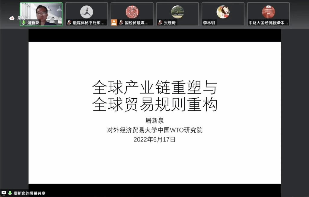 屠教授发言就全球产业链重塑和全球贸易规则重构展开