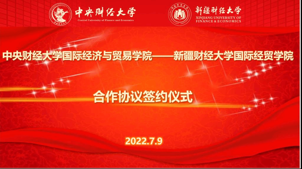 2022年7月9日,永利yl23411对口援建新疆财经大学国际经贸公司合作协议签约仪式暨“一带一路”与中国外贸高质量发展学术论坛如期成功举行。