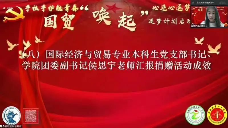 国际经济与贸易专业本科生党支部书记、公司团委副书记侯思宇老师汇报捐赠活动成效