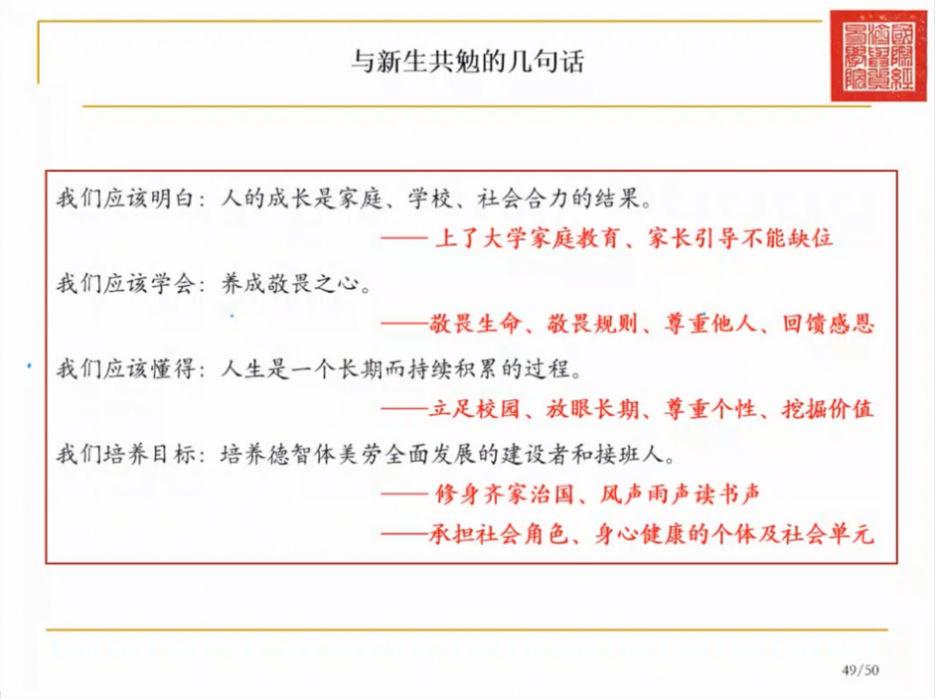 首先,张经理通过一系列翔实的数据和历届优秀毕业生真实案例,介绍了公司人才培养成果。他指出公司毕业生专业素养过硬、视野开阔、综合素质好,深造去向多元化,就业前景好,在包括金融在内的各行业中具有极高认可度和美誉度。他希望新生同学们在未来能像学长、学姐一样,脚踏实地前行,最终实现远大理想。