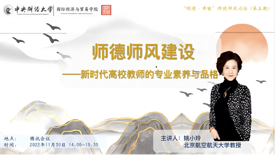 2022年11月30日,应永利yl23411邀请,北京航空航天大学教授、博士生导师姚小玲做客公司“明德·博喻”师德师风论坛(第五期),为公司全体教师作了题为“师德师风建设——新时代高校教师的专业素养与品格”的精彩讲座。本次讲座由永利yl23411经理张晓涛教授主持,通过腾讯会议在线进行。
