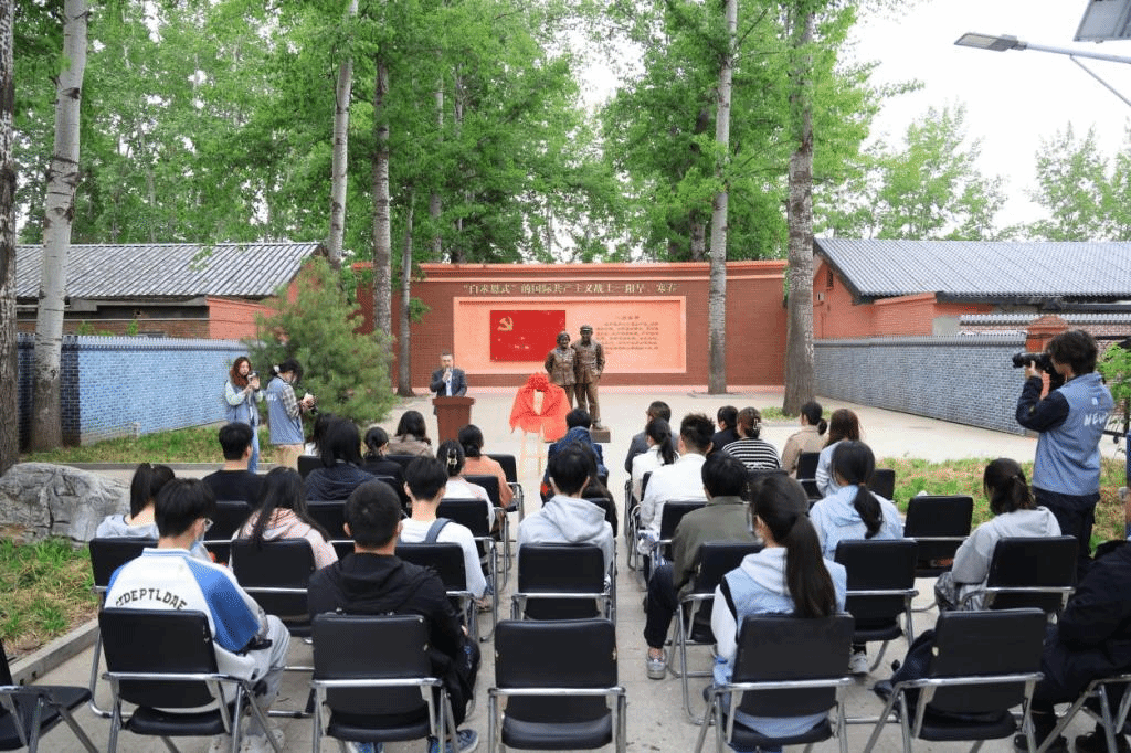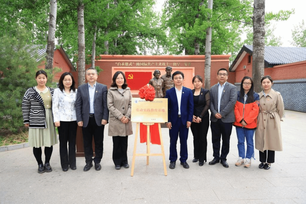 仪式现场,与会领导共同为劳动实践教育基地揭牌。合影留念后,师生参观了爱国主义教育基地——阳早寒春生平事迹展及故居和良种奶牛繁育中心。