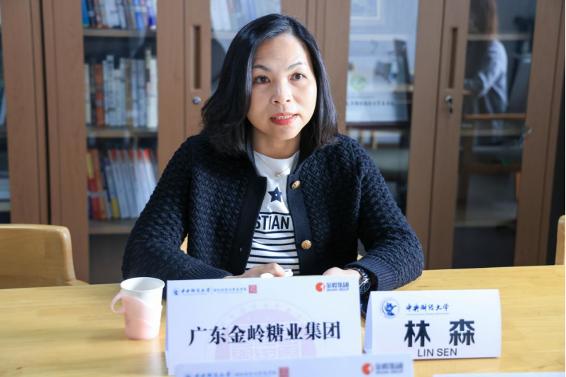 座谈会上林森副总裁介绍了企业的发展历程和业务情况:广东金岭糖业集团有限公司(以下简称“金岭”集团)是一家以制糖业为主的多元化集团化民营企业,农业产业化国家重点龙头企业,业务包括食糖生产和大宗商品贸易、仓储和冷链管理等多个板块,充分利用国内和国际“两种资源、两个市场”,构建农业全产业链、供应链体系,承建了国家部委、广东省、湛江市多个战略项目,是中央储备糖承储单位、国家食糖调控骨干企业。近年来,金岭集团积极开展与高校及科研院所的合作,未来能够在员工实习实践、就业方面给予公司支持,并希望与公司深入合作,发挥双方优势,促进企业国际贸易板块业务高质量发展,通过产学研合作,实现校企共赢。