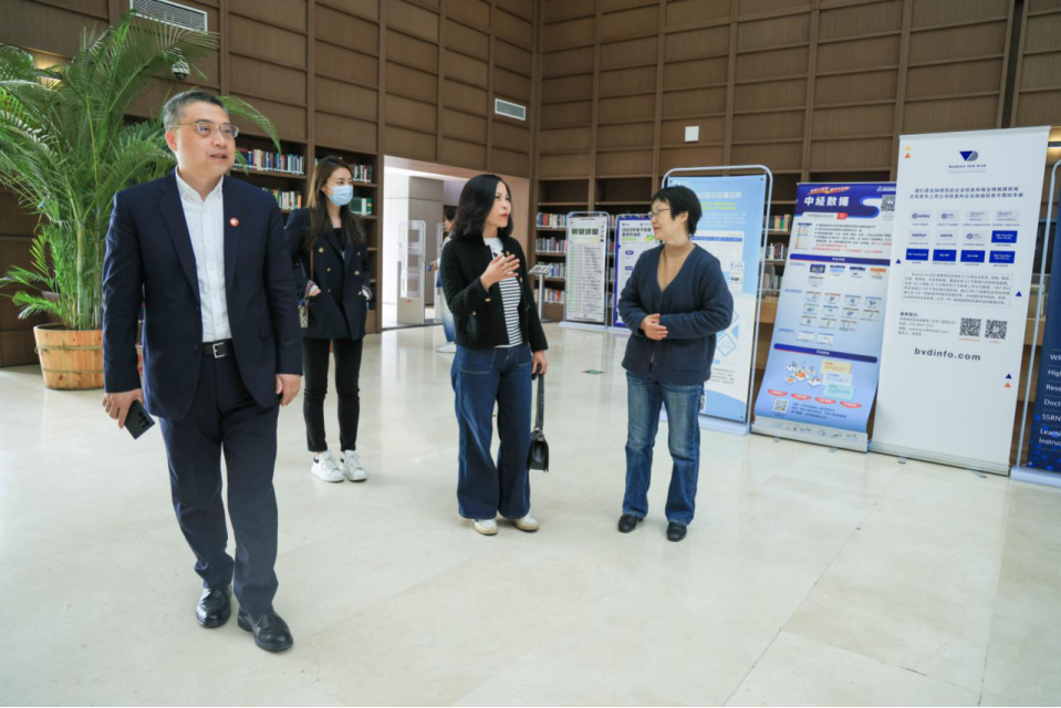座谈会前,林森副总裁在张晓涛经理及相关老师陪同下参观了北京高校老员工创业园(沙河园)与公司图书馆。