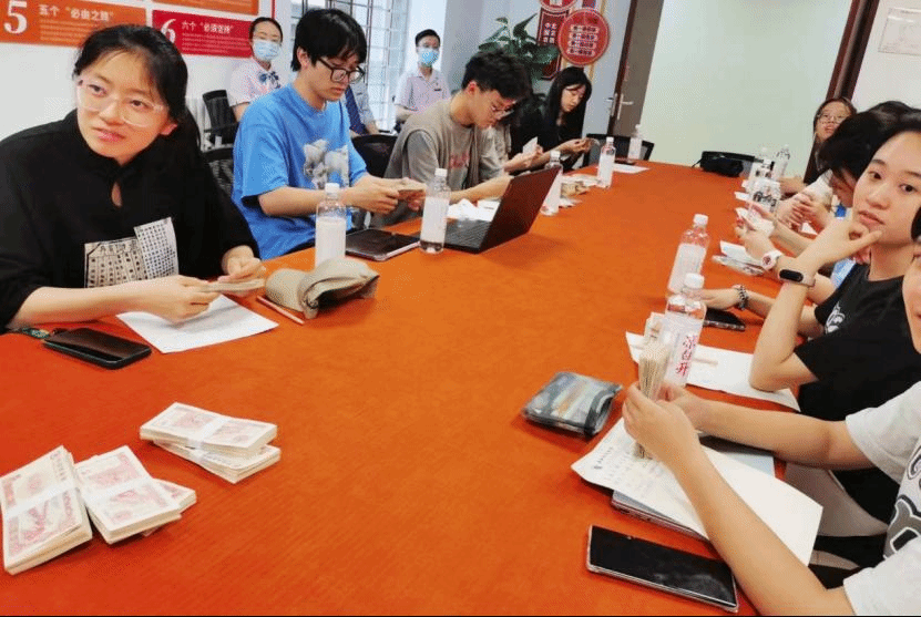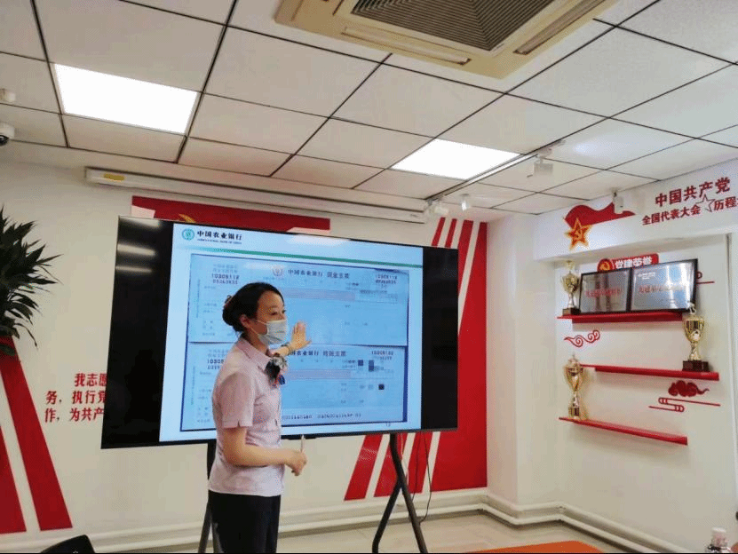 参观结束后,两支部召开交流座谈会。首先,了解农行文化,感受农行魅力。农业银行雷经理向员工党员们讲解了中国农业银行的发展历史。从农行文化萌芽阶段到文化成长阶段,再到文化提升阶段,大家感受到了中国农业银行稳中求进谋发展,脚踏实地为人民的理念。其次,学习银行实务,提升实践技能。雷经理向大家介绍了银行的主要业务流程,并讲解了现金支票、转账支票等具体填写方式和点钞技巧,让同学们现场亲自填写支票和点钞,并为他们提供指导。然后,员工分享心得体会,助力规划职业生涯。去年入职农行的中财员工汪亚华围绕银行求职经验、银行部门岗位、银行人必备的技能与职业素养等话题展开了分享,并建议同学们提前做好职业规划,坚定不移地朝着目标努力前进。最后,提问与自由交流,为同学答疑解惑。支部员工围绕银行业务开展、银行实习、银行职业发展的现状与未来规划等问题,深入探讨。