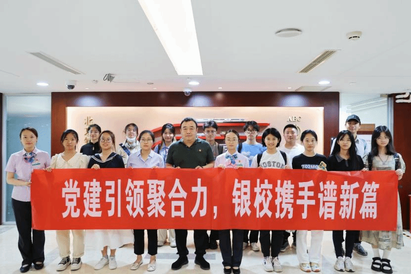 为深入开展学习贯彻习近平新时代中国特色社会主义思想主题教育,贯彻落实党中央关于在全党大兴调查研究工作部署,进一步推动支部间形成互学共促、优势互补、资源共享、共同发展的良好局面,2023年5月17日下午中澳项目第三本科生党支部来到共建支部——中国农业银行北京铁道支行党支部进行了调研走访和交流座谈。中国农业银行铁道支行党支部书记、行长,大堂经理雷紫焱,理财经理汪亚华 ,与中澳项目第三本科生党支部书记徐莉以及支部员工党员代表参与了此次活动。