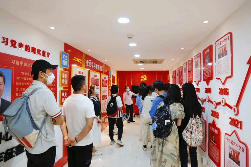 活动伊始,在大堂经理雷紫焱的引领下,同学们详细参观了铁道支行的工作环境。在一层,大堂设置“浓情暖域”公众服务区,蕴含着对客户深厚的人文关怀。该区域内设有电子银行体验区和消费者权益保护室,将智能服务台与人工柜台相结合,极大提升了客户体验好感。在银行二层,“党建展示柜”中陈列了铁道支行党支部的荣誉证书、先进事迹、铁道党建专刊和阳光铁道刊物等。铁道支行党支部还在北京儿童医院设立了“小水滴”新生儿基金,旨在为有缺陷的新生儿提供治疗上的资金支持,帮助他们克服困难,助力未来。此外,还在多单位开展防诈骗知识普及活动,发挥自身专业优势,布好金融防线。随后,在参观党史馆期间借助VR虚拟现实技术,员工党员们身临其境地体验到了红军长征、抗日战争、土地改革、社会主义建设等历史事件的全过程,感受到了中国共产党人顽强奋斗的意志品质精神,也更加珍惜来之不易的伟大斗争成果,更加坚定了为中华民族伟大复兴贡献力量的决心。