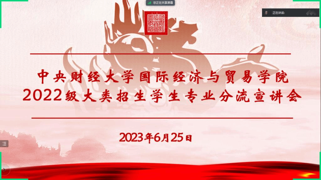 6月25日,永利yl23411通过线上腾讯会议举行了2022级大类招生员工专业分流宣讲会,副经理李瑞琴、党委副书记杨武出席宣讲会,本科教务干事王峰、辅导员侯思宇以及2022级经济与贸易类本科生参加了会议。会议由李瑞琴副经理主持。