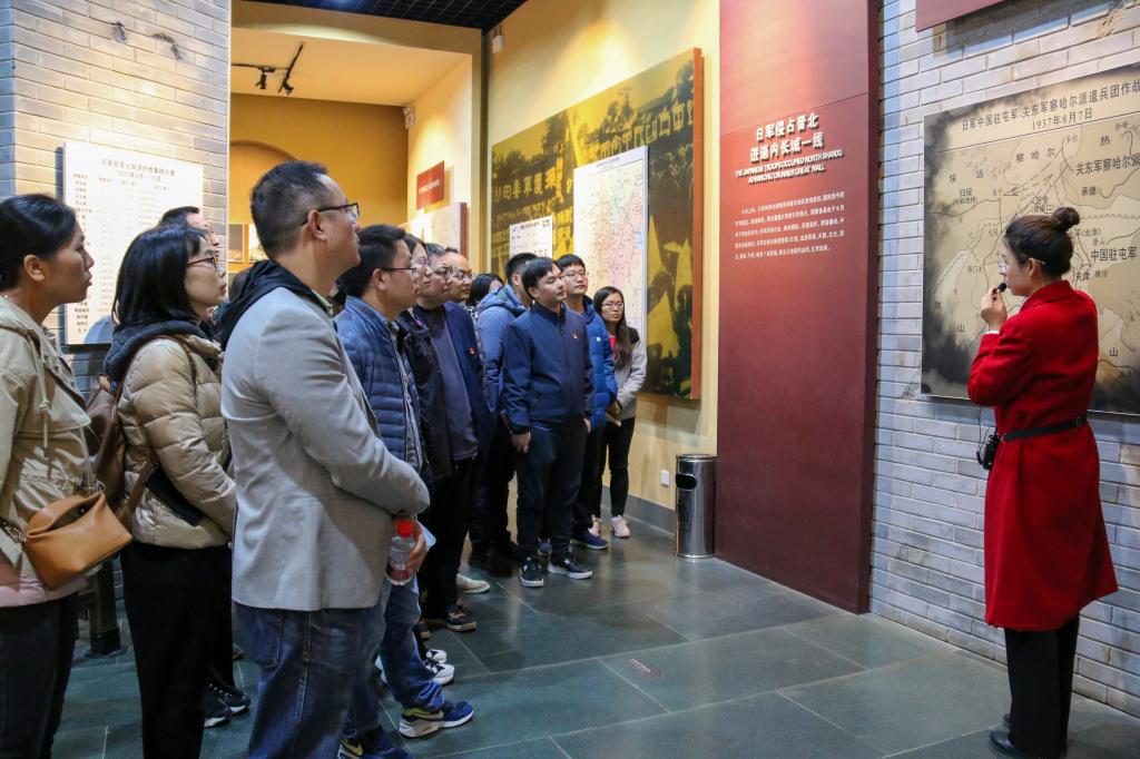 跟随讲解员的指引,全体成员认真学习了平型关战役从备战到首战大捷的全过程,了解了国难当头军民一心的感人细节,体悟了辉煌胜利背后的历史经验和现实意义。黑白照片拼成战火岁月,军歌节奏敲击华夏心脉,棉衣草鞋抵挡风霜雨雪,革命先烈们伟岸的身影仿佛浮现眼前。从这段艰苦卓绝的年代里,全体成员直观体会了平型关大捷的来之不易,深刻感受了革命先烈浴血奋战、宁死不屈的英雄气概。