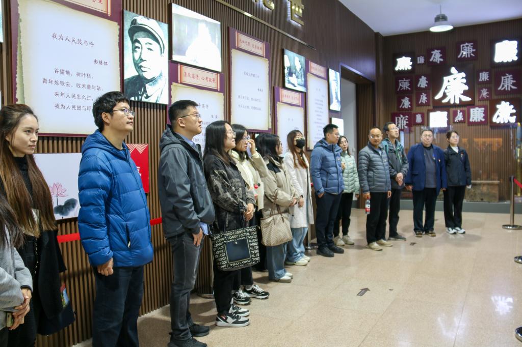 在廉政文化展厅,从毛泽东一件打了73个补丁的睡衣到朱德的“借款信”,从聂荣臻的一床用了两代人的鸭绒被到徐海东的廉洁“三问”,从陈毅的《七古 手莫伸》到叶挺的《囚歌》,革命前辈们一个个经典廉洁故事让人肃然起敬,启迪在场成员要在学史中明理,在正德中增信,在守己中立身,筑牢廉政防线,弘扬正气清风。