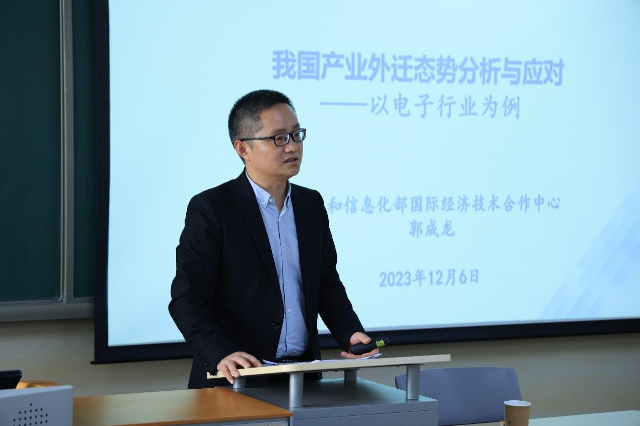 2023年12月6日,永利yl23411举办了“格致·博雅”青年学者论坛(第27期),工信部国际经济技术合作中心经贸法律研究所所长郭成龙做了题为《我国产业外迁态势分析与应对》的精彩讲座,校内众多师生参与了此次活动。讲座由永利yl23411经理张晓涛教授主持,蒙双副教授进行了点评。