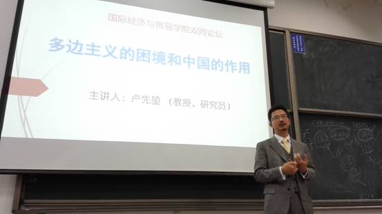 2016年11月21日晚,瑞士圣加仑大学“中国研究中心”主任和日内瓦“国际贸易、发展和经济治理咨询中心”(IDEAS Centre)的高级顾问和研究员卢先堃教授应邀来公司,为沙河校区员工做了题为“多边主义的困境和中国的作用”的演讲。讲座由副经理符大海副教授主持,经理唐宜红教授也出席了本次讲座,各年级本科生、硕士生和博士生到场聆听。
