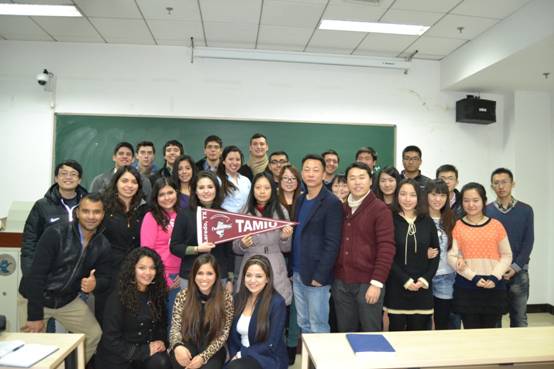 此次交流由永利yl23411的霍达老师主持。永利yl23411刘春生副经理首先致欢迎辞。永利yl23411的赵盼盼和林珈旭就中国经济增长结构的转变和中美贸易关系的发展作了题为’Growing like China’的报告。美国德州农工国际大学的Anthony Stahl和Mario A. Vargas介绍了北美自由贸易区(NAFTA)在北美地区能源、制造、物流等行业中的重要作用及其对于边境地区的商贸活动产生的积极影响。同时Laura Chapa和Gloria Conde就公司的专业结构、学位设置以及校园环境进行了介绍。此次交流还就中美经济、两国文化、职业发展等问题进行了交流。