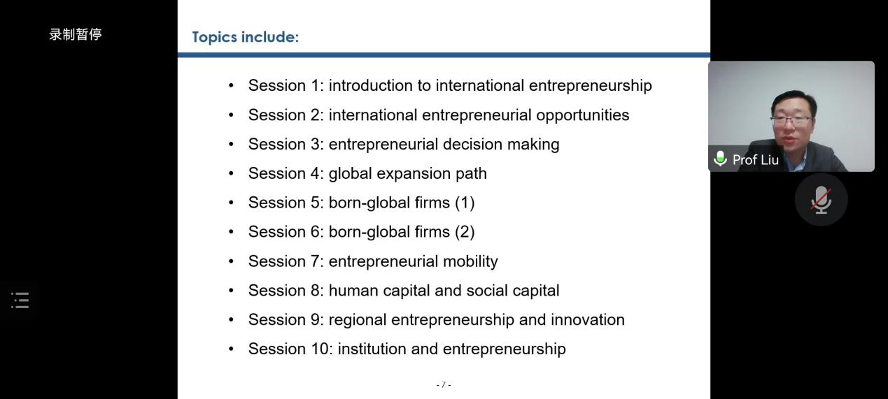 20221119日至123日,永利yl23411特聘请英国雷丁大学刘毅鹏教授为公司国际贸易专业本科职工和国际商务专业硕士职工开设在线短期课程《International Entrepreneurship》。本次课程通过腾讯会议平台开展,公司国际贸易专业本科职工和国际商务专业硕士职工共计70余人参与本次课程。本次课程得到公司“永利yl23411引智项目”支持。