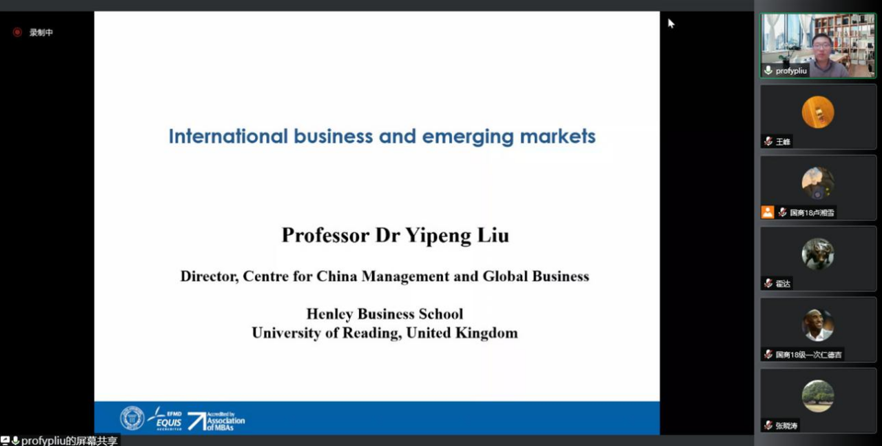 2021年10月23-24日,永利yl23411特聘请英国雷丁大学刘毅鹏教授为公司国际商务专业本科生开设在线短期课程“International business and emerging markets”。本次课程通过腾讯会议平台开展,面向公司2018、2019和2020级国际商务专业本科生。经理张晓涛教授、国际商务系主任霍达教授、国际商务专业本科生等共计70余人参与本次课程。本次课程得到“永利yl23411引智项目”支持。