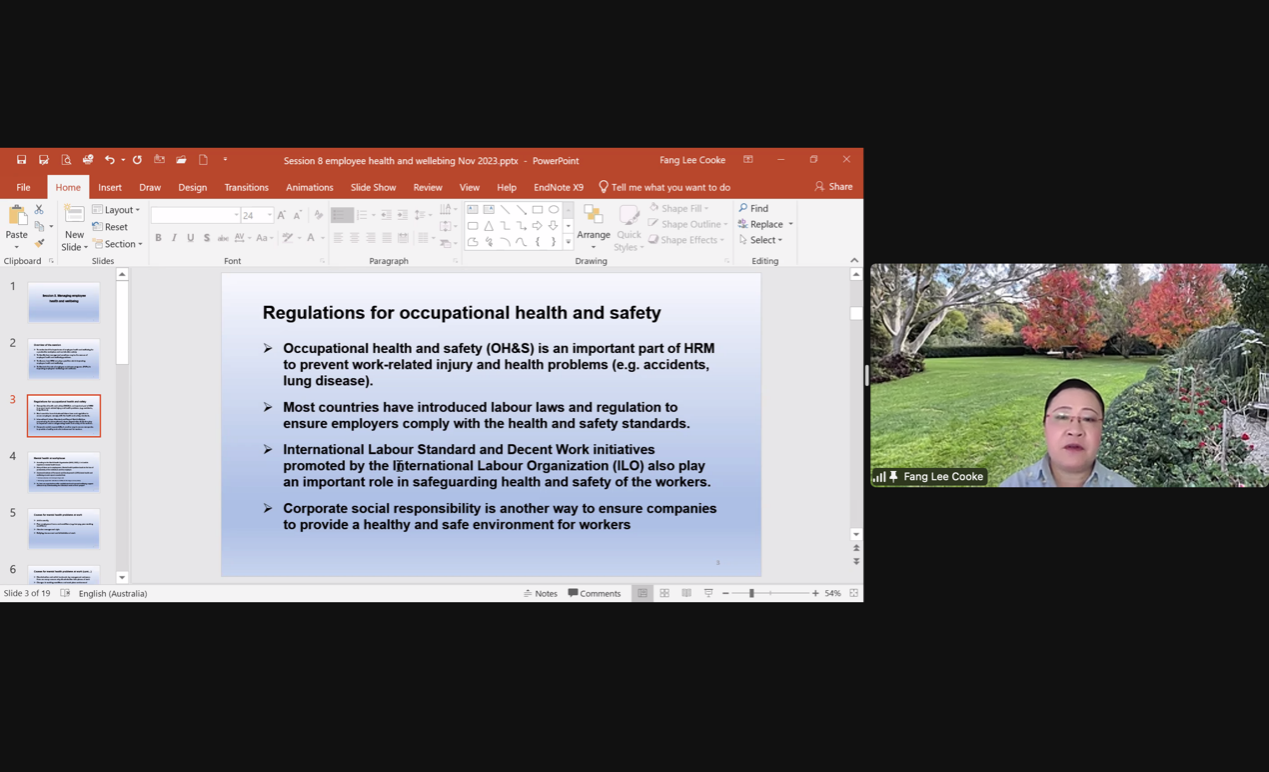 为了加强公司学科与专业建设,进一步提升公司国际商务硕士的专业能力和水平,充分利用海外优秀教育资源,在近3年开设国际小学期以及国际化短期课程经验基础上,公司于2023年10月21日至11月26日特聘请澳大利亚莫纳什大学李应芳教授为国际贸易专业本科职工和国际商务专业硕士员工开设在线短期课程《Human Resource Management》(36课时)。本次课程通过Zoom平台开展,公司国际经济与贸易专业本科职工和国际商务专业硕士员工共计40余人参与本次课程。本次课程得到公司“永利yl23411引智项目”支持。
