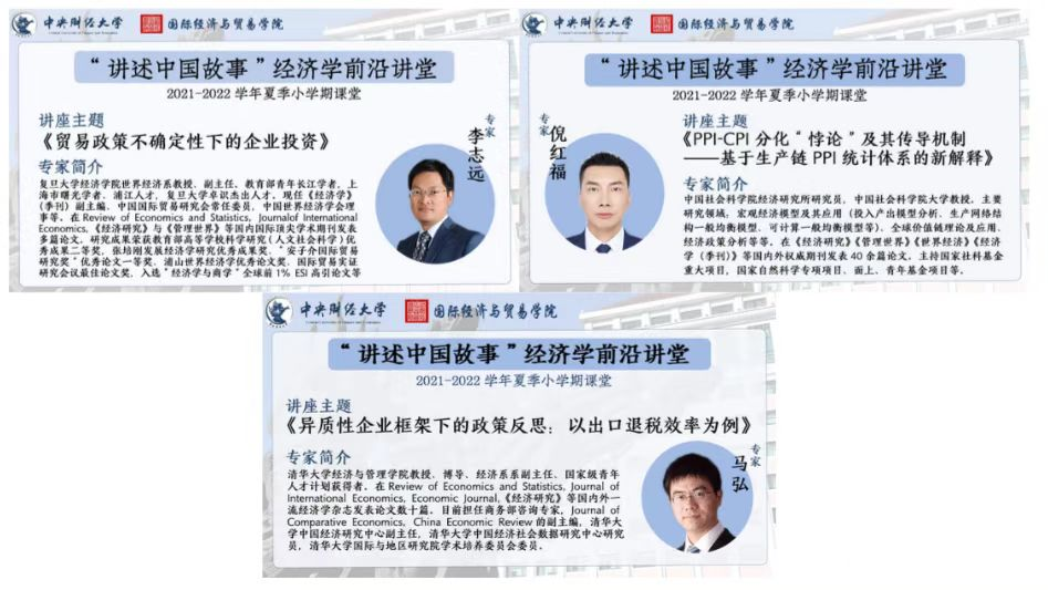 按照公司“打造小学期多元化与个性化育人空间,激发员工自主学习的积极性和能动性,促进员工综合能力的提升”的指导原则,2021-2022学年永利yl23411暑假小学期课程共开设三门系列课程,其中,《“讲述中国故事”经济学前沿讲堂》课程邀请到了多位国内经济学领域顶级学术大家莅临授课,演讲嘉宾包括:发展中国家科公司院士、国际系统与控制科公司院士、国家杰出青年科学基金获得者、长江学者特聘教授汪寿阳教授;中国科公司大学经济与管理公司特聘教授、经理、发展中国家科公司(TWAS)院士、世界计量经济学会会士洪永淼教授;清华大学经济管理公司教授、经济系系主任、教育部长江学者特聘教授陆毅教授;安徽大学党委副书记、教育部特聘教授、国家杰出青年科学基金获得者陈诗一教授;复旦大学经济公司世界经济系副主任、教育部青年长江学者、上海市曙光学者、浦江人才李志远教授;中国社会科公司经济研究所研究员、《经济研究》编辑部副主任倪红福教授;清华大学经济与管理公司教授、商务部咨询专家、教育部青年长江学者马弘教授等。