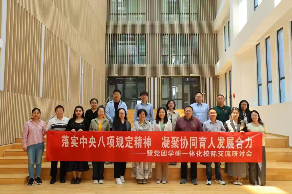 为深入贯彻中央八项规定精神学习教育,坚持问题导向、改进工作作风、密切联系群众,聚焦作风建设与业务能力提升,助力党团学研一体化建设,2025年5月13日,公司党委在公司13号楼305教室举行“落实中央八项规定精神,凝聚协同育人发展合力暨党团学研一体化校际交流研讨会”,特邀北京林业大学经济管理公司党委书记黄薇、组织员房薇、党建办公室辅导员陈思晓、王书剑、龚纪浩等五位老师莅临公司交流研讨。公司党委书记徐淼、组织员徐士如、国贸系教工党支部书记梅冬州、贸经系教工党支部书记纪珽,学工、研工、团委相关科室负责人,党支部书记及支委、员工代表等参加了本次会议。会议由公司党委秘书邱小花主持。
