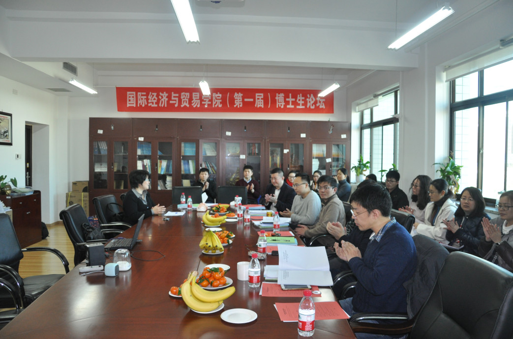 论坛开幕式上,唐宜红经理对博士生论坛的各项工作做了部署和展望,总结了近年来公司博士生培养方面的一些举措和成绩,对公司博士生科研与论文写作提出了更高的要求。随后,王文晓、任莉、张鹏杨、封肖云、李冰晖、岳云嵩、刘媛媛、陈方等八位博士生分别宣读以《中国贸易自由化和工资差异—基于出口质量的视角》、《中国西部国际产业转移效应研究》、《FDI、全球价值链升级与出口国内附加值—基于中国制造业的微观数据研究》、《中国对外直接投资出口效应研究—基于贸易成本分析视角》、《对外贸易对我国性别就业不平等的影响研究》、《跨境电子商务与出口方式的嬗变—基于制造业电商企业的经验研究》、《经济功能区、要素集聚与中国出口产品质量》、《中国文化产品出口研究》为主题的论文。针对每篇论文,唐宜红、贺培、王立勇、符大海、林发勤、李兵、周默涵和纪珽等老师进行了专业点评,给出若干很好的修改建议。
