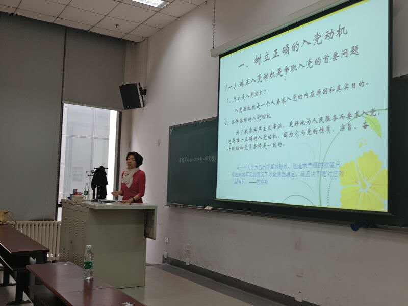 接下来,毛静老师阐述了如何以一名党员的标准要求自己。她指出,党组织在接收一个同志入党时,必须要按照党章规定的党员标准进行全面、细致的衡量。入党积极分子作为党组织的重点考察对象,更要正确认识和对待党员标准,时刻以党员标准严格要求自己。同时,入党积极分子还要自觉接受党组织的培养、教育和考察,以积极、耐心的态度面对党组织的各种考验。毛静老师联系实际的生动讲解使在座入党积极分子深刻地理解了以一名党员的标准要求自己的内涵,理解了“一名党员一面旗”的意义。