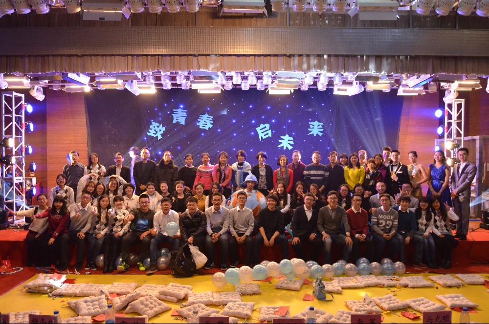 高潮过后,晚会也接近尾声,最后一个节目由11、12、13、14级同学们共同演绎,一同唱响院歌《梦开始的地方》,纪念那些与年轻的国贸公司相伴成长的日子,憧憬着青春的梦想将指引我们不断创造未来。在歌声中,“致青春,启未来”2015年迎新晚会暨表彰大会圆满结束。所有老师上台与演职人员合影留念,观众有序退场。