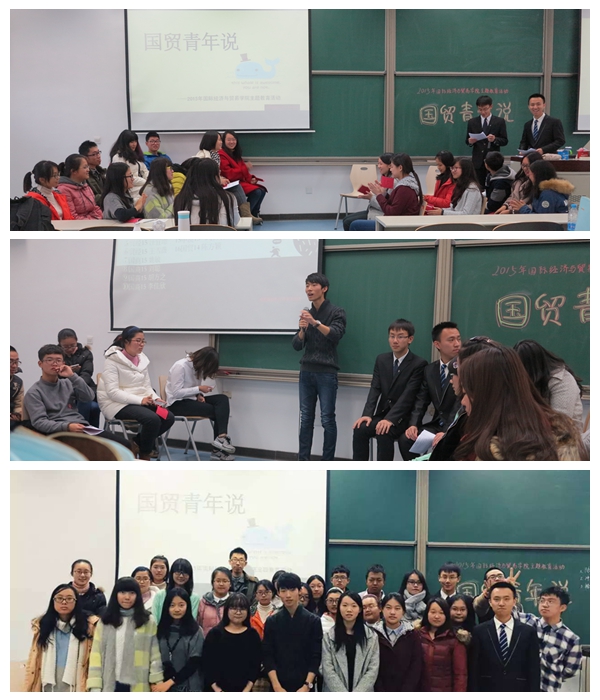 11月25日下午3:00,公司主题教育活动——“国贸青年说”在西区主教202准时开始。本次活动由公司团总支员工会项目部主办,以爱情为主题分为两个话题进行讨论。第一个话题为“地理距离会不会成为爱情的绊脚石”;第二个为“你相信一见钟情还是日久生情”。参与讨论的是来自大一大二的本公司的同学,本次活动特别邀请外国语公司郝天宇同学和财政公司王莹同学作为嘉宾。活动旨在为同学们提供一个探讨问题、交流思想的平台,通过对身边常见问题的思考与讨论,各抒己见、展示风采,同时树立具有个人特色的正确价值观。