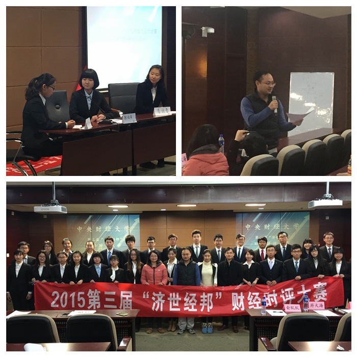 经过半个月的报名、初赛和复赛,由公司主办的第三届“济世经邦——财经时评大赛”终于在2015年12月1日晚正式落下帷幕。经过一轮轮披荆斩棘进入决赛的8组选手,今天在中财大厦2楼报告厅各抒己见,用智慧、机敏和他们对财经的独家视角呈现了一场精彩的时评盛宴。公司马光明老师、符大海老师和俞脱脱老师担任了决赛的评委。