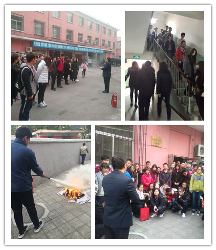 消防演习暨安全知识讲座由卞松华老师主持,他言简意赅的强调了举办此次安全教育活动的重要意义。接下来,解彭飞老师向员工介绍了在突发火灾中室内应急逃生的方法。在逃生演练中,同学们按照引导人员的疏散指导,快速有序地从学七宿舍楼中及时安全地撤离出来。在空地集合后,解彭飞老师又为大家讲解了有关火灾现场的应急处置方案,灭火器的使用原理以及相关的注意事项。解老师告诉同学们“提、拔、瞄、压”四个重要要点,简洁精准地介绍了干粉灭火器的使用方法,并亲自演练操作示范,尤其重要提醒同学们灭火器的有效使用时间及喷射范围。随后男女同学代表分别进行操作演练,员工代表通过正确使用灭火器,成功将火堆扑灭。同学们收获了一次生动、深刻的防火教育。