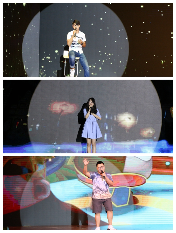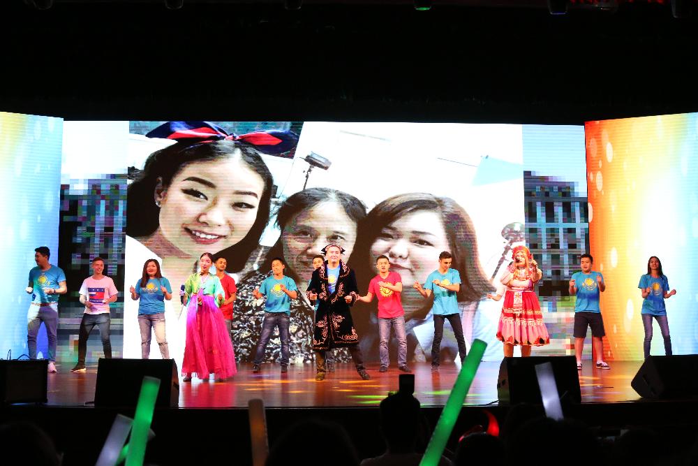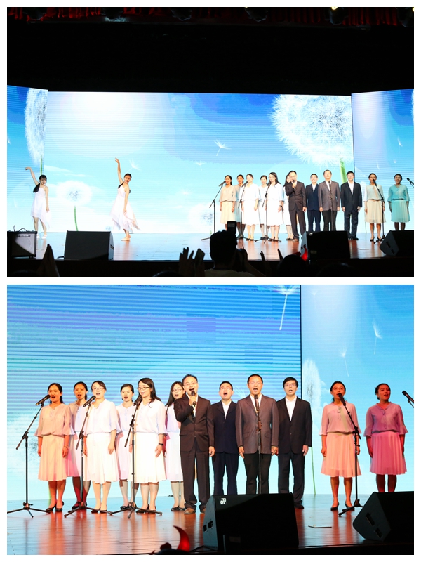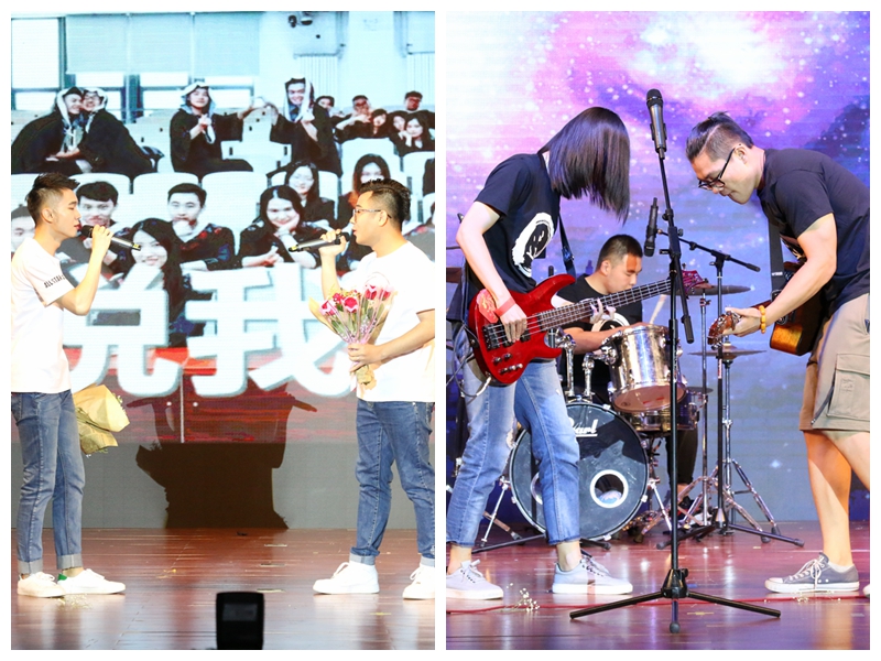 随后是晚会第二个章节“伴梦成长”。同学们的优秀离不开老师的谆谆教诲,学术水平一流、亲切育人的老师们,也为大家带来了惊喜。一首《天空之城》的合唱,恢弘悠远的歌声把大家的思绪带向远方,马光明老师刚一开口便赢得了全场欢呼与掌声,“未来的路有多长,坚持梦想”,老师们希望通过这首歌,祝愿毕业生们能展翅高飞,鹏程万里,鼓励他们为寻找心中的“天空之城”而不断努力拼搏。接着国际文化交流公司国贸专业的职工们为同学们带来了特色表演俄罗斯风格的歌舞《再见中财》,能歌善舞的职工代表们用歌舞的形式回顾了他们在中财留下的快乐时光。六月,他们将和其他专业的毕业生们一起向公司告别,一起向中财告别。歌舞表演后,三位十佳歌手登台献唱。在今年的“十佳歌手”大赛中崭获冠军的蓝湛博同学以一曲《我要你》开场,随后侯懿纯同学带来了歌曲《人间》,康晋源同学带来歌曲《烦恼歌》,在婉转悠扬的歌声里,观众们如痴如醉,时而在欢快的节奏里享受现在,时而又沉浸在对过去青春的回忆里。