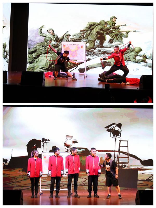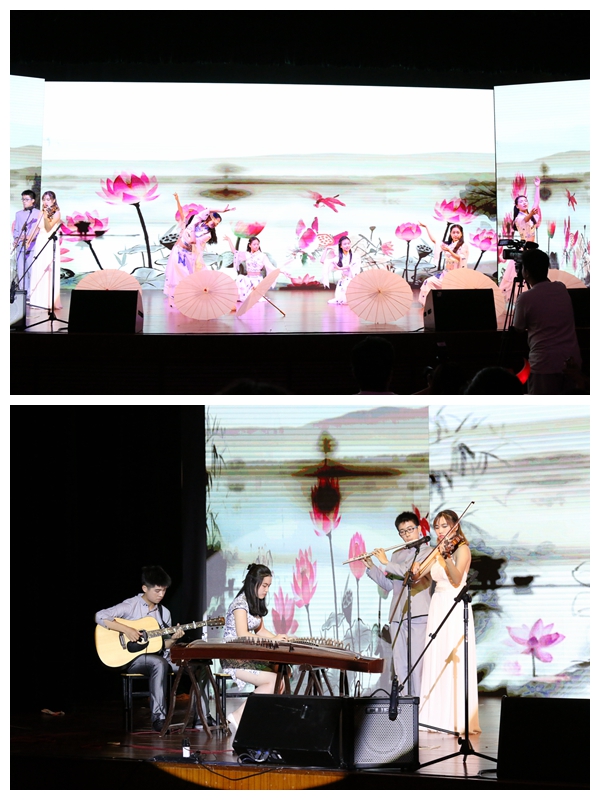 晚会第一个章节是“不负初心”,希望毕业生们在今后的人生道路上不忘当初的理想,不断挑战自己,放飞梦想。动感的音乐响起,八位青春靓丽的中财姑娘踏着轻快的舞步入场,节奏变幻,她们在场中尽情展现自己的舞姿,绚丽的灯光中,她们将昂扬向上、活力四射的青春气息表现得淋漓尽致。接着两位阳光帅气的大男孩用精彩绝伦的街舞技巧再次引起现场同学的阵阵掌声,之后七个毕业生同样用爵士舞在台上展现出了她们最潇洒昂扬的姿态,她们的笑脸如同七支美丽的花,获得了现场观众的阵阵掌声。随后,戏剧团带来了小品表演《拍戏》,演员逼真的演技、妙语连珠的台词,幽默风趣的表演让观众忍俊不禁之余又勾起了17届毕业生曾经的回忆。“不负初心”的最后一个节目,《烟雨等你》,是由艺术团、舞蹈团和器乐团联袂表演的器乐舞蹈节目,在西洋乐与丝竹完美融合的音乐中,六位身着传统服饰的同学向徐徐走出,她们身着青花瓷水袖,手里撑着一把绸伞,仿把观众们带回了江南水乡烟雨佳人的世界里。水袖翩飞,他们手中的伞也跟着舞动起来,葱指成兰,画风唯美。观众们深深地沉醉在那荷塘叶色的场景与“天青色等烟雨,而我在等你”的动人旋律中。