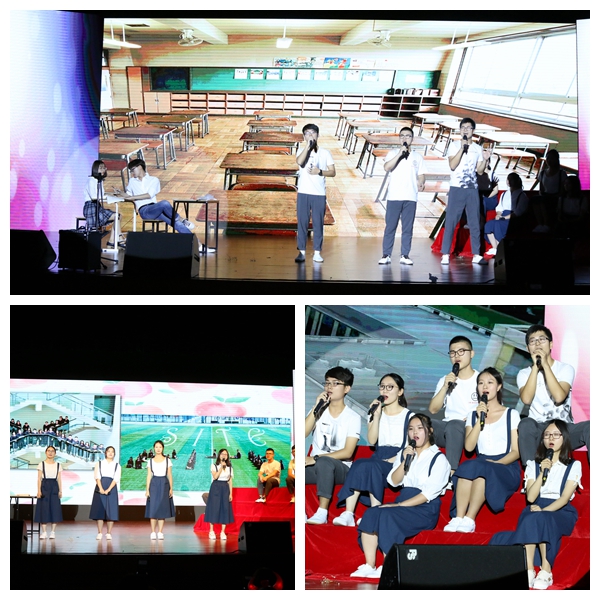 颁奖环节结束后,晚会进入最后一个章节“振翅未来”。17届毕业生代表带来了他们的原创歌曲联唱——《我们的歌》,用音乐来回忆自己的老员工涯,用歌声诉说自己的国贸情缘。毕业生代表楼禹成、吴敏同学走上舞台,献唱《风雨同舟》、《春风十里》。随后曾获得过第十五届校园十佳歌手大赛亚军的zhei乐队带来了他们的原创歌曲《以赛亚》和《雨季》。声乐团的同学们为大家带来情景小合唱《给未来的自己》,婉转的歌声和动情的表演勾起了毕业生的美好回忆。接着老师与毕业生代表一起献上了诗朗诵节目《春风化雨》,老师和同学们抑扬顿挫的朗诵,深深感染了现场的每一名观众。拿着手中的诗稿,毕业生们与老师深情对望,那四年来老师春风化雨般的教诲仿佛又一次回响在耳畔,与老师一起讨论修改论文的场景又一次浮现在眼前。最后几名毕业生走上舞台一起演唱国贸公司院歌,同学们也在他们的带动下走上舞台一起演唱。传唱了四年的院歌,仿佛是一根丝带,院歌把一届又一届的国贸人与公司紧紧联系在一起。