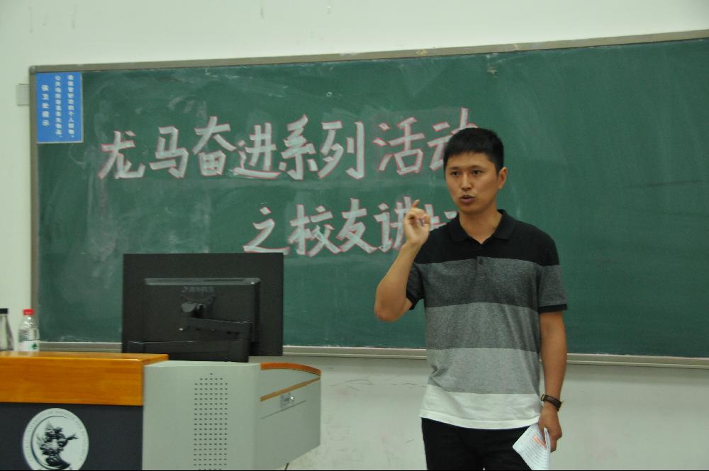 学长又继续讲了“何谓人才”,他通过易经的“三才之道”讲述了人的本质与社会需要之间的联系。之后学长就“何谓人才”发表了自己的几个观点,首先告诉每一位同学“天生我材必有用”,肯定了在座的每一位同学都是人才;其次学长希望我们要在自我认知的基础上发展。自我认知是了解自我、提升自我的过程,只有充分的自我认知才能更好地改变自我,使自己更加优秀。最后学长讲了我们应该自我完善,加强后天的重塑能力。学长列举了战国时荀卿《荀子·劝学》“梧鼠五技而穷”的例子,阐明了我们应该在当今的人才市场中自发的去适应“人才供给侧改革”规律,我们应该“五技而不穷,一技而强”。