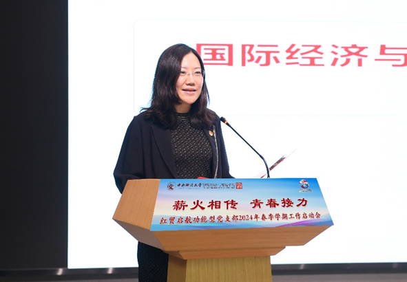 公司国际商务学系助理教授、红贸启航功能型党支部组织委员蒋海威,以《新质生产力与创新发展》主题,与现场师生展开共学,紧跟党的前沿理论,以学促建。他以新质生产力基本概念为依托,从经济学视角切入,用生动的案例解读新质生产力新在哪里。挖掘其背后的核心元素——创新,梳理中国创新总体演变趋势、行业结构特点和区域创新现状,辅以微宏观创新创造数据进行解读,总结新质生产力在培育方向和政策支持两方面的发力点,倡议同学们锐意进取、开拓创新,化繁为简、深入浅出地传播党的创新理论。本次讲座以学铸魂、以学增智、以学正风、以学促干,将党最新的理论知识与国家发展现状结合,生动完成思想领航的作用。