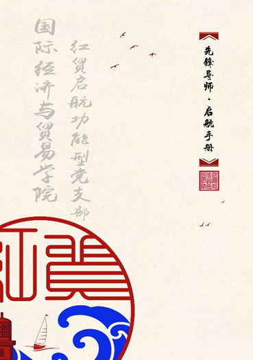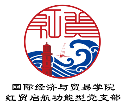 红贸启航功能型党支部Logo结构为上图下文。Logo的上半部分圆形图样里是用篆体书写的“红贸”二字,篆体是中国古文字,是中华文明的象征,“篆者传也,传其物理,施之无穷”,红色篆书代表着红贸启航功能型党支部孕育着、传播着中财的红色基因与先锋活力。在“红贸”二字下方则由传统蓝釉色海水纹、红色灯塔与帆船共同组成,海浪与帆船形象地比喻了青年学子在知识海洋与人生旅途中乘风破浪、扬帆起航,红色灯塔象征着指引,寓意红贸启航党支部在大一新生中发挥好引领与服务作用,用光照亮新生前行,争做新时代好青年;传统海水纹传承了华夏民族独有的文化精神,寓意“上善若水”“厚德载物”“海纳百川”,象征着包容和磅礴,正如中财国贸青年承龙马之志,吞吐大荒、驰骋乾坤。整个图样设计为圆形,象征着团结互助,也象征着国贸学子的全球开阔视野,“红贸”二字和海浪犹如陆地和海洋的丝绸之路,表达着国贸公司团队建设与人才培养特色,党支部将和新生一起,共同践行国贸人“根植中国,放眼世界,砥砺奋进,追求卓越”的精神,传承以“开放包容、责任担当、厚德载物、守正出奇”为核心的公司文化。