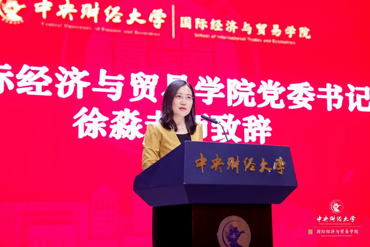徐淼书记对408名国贸新生的到来致以诚挚的问候和衷心的祝贺。徐书记指出,“为国而生,与国同行”是中财大的红色底蕴和使命,并对新一届国贸学子寄予“青年力行,财经报国”的厚望。她将新生们比做《黑神话:悟空》中的孙悟空,将国贸公司比作与各位“天命人”并肩前行的角色,她希望新生们能够在这个充满挑战与机遇的时代,创造独属自己的“黑神话”,并送给新生三条“灵根”:一是要主动学习,捕捉自己的“人生方向”。大学充满自由选择与自发探索,需要同学们完成从“要我学”向“我要学”的转变;大学里还需要更加丰富多元学习,同学们需完成从“单领域”到“跨学科”的转变;大学里也需要更具问题导向地学习,同学们应尽力完成从“研究什么”向“解决什么”的转变。二是去思考,遇见“真·灵山”。唯有善于思考,透视本质,方能博学慎思,兼听则明,打破信息茧房,应对时代挑战。三是知行合一,敢于实践。新一代的财经人需要勇于尝试和探索,在实践中锤炼真才干,拓展新认知,研究真问题,终能修成正果。最后,她勉励同学们立足新时代,展示新作为,展现青春的奋斗底色。