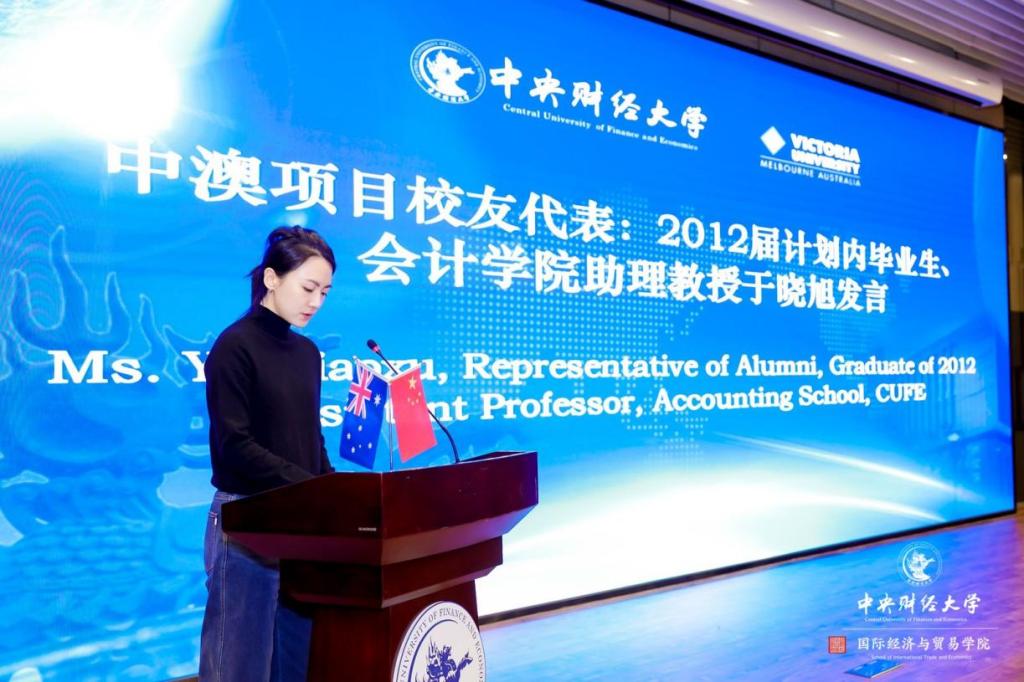 2008级员工、现任公司会计公司助理教授于晓旭作为员工代表致辞。她首先表达了受邀参与典礼的荣幸及对母校和授课老师的感激。回顾学术旅程,中澳合作项目的教学培养和知识体系为员工后续留学深造打下坚实的基础。她建议同学们要勇于走出舒适区,保持好奇心和学习热情,充分利用中澳合作项目平台的优质资源,发掘自身潜力,发展个人兴趣。期待新生们以马拉松心态迎接挑战与挫折,珍惜老员工活,享受学习路上的每一个精彩瞬间。