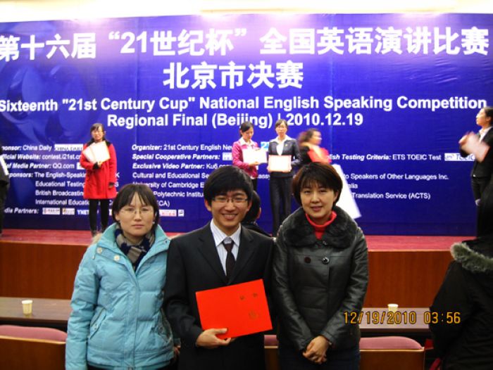 今年10月-11月,李治同学在公司大学外语语言学习中心针对本届比赛举行的面向公司全体同学的“永利yl23411‘21世纪杯全国英语演讲比赛’校内选拔赛”中,以特等奖的优异成绩胜出,直接进入北京市决赛,与来自清华大学、北京大学、北京外国语大学,永利yl23411、北京航空航天大学等23所高校的27名选手同台竞技。