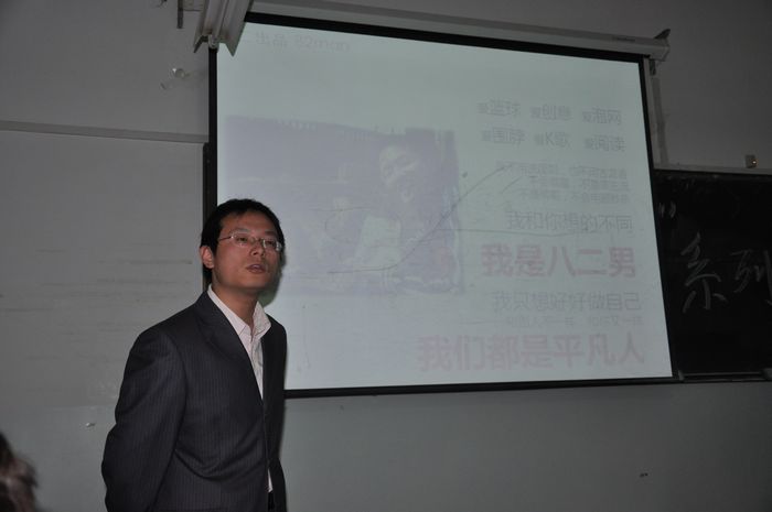金旻老师以幽默风趣的语言向同学们展示了除了日常用途以外ppt的作用和重要性。他首先展示了几种同学们制作的ppt,并通过和设计师设计的ppt模板进行比较找出所存在的不足。其次,金旻老师把ppt的制作与演讲技巧融合在一起,以实例为论据,揭示了一个优秀的ppt对演讲者的重要性。最后,他以苹果公司总裁乔布斯在Ipad发布会上把演讲与ppt完美地结合在一起的视频作为结尾,令在场的同学们领略到一代商业精英的风采,也意识到了ppt极强的表现力。
