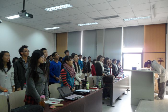 启动仪式结束后,基础团校第一课——“扬帆梦想,勇于担当”优秀员工干部交流专题讲座正式开始。讲座的主讲人是校团委组织部团委副部长,来自08级国经贸班的李航同学。他从个人将近四年的员工干部经历出发,谈及了大学中有关于学习、生活、工作的各方面经验。让在场的同学了解到了大学中应该以学习为主,工作为辅,两者相互协调,并激励在场的员工干部认识到责任和团队的重要性,在场的员工干部都感觉讲座收获颇丰。