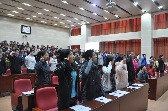 11月8日下午,公司在沙河校区主教208教室举行了沙河校区基础团校启动仪式。启动仪式第一项为重温入团仪式。全体基础团校学员起立,共唱中国共青团团歌。接着,11级国际经济与贸易班团支书印润泽同学带领同学们重温入团誓词仪式。重温入团仪式让同学们再次热血澎湃,感受到了团的庄严与团员的责任。仪式第二项,组织部部长张山向全体学员详细介绍了基础团校的基本目标、章程以及教学安排。随后,基础团校董事长李欢老师做了基础团校开校致辞。李欢老师首先对同学们积极向上的精神风貌表示了赞扬和鼓励,并针对困扰了许多员工干部的问题提出了个人看法与建议,最后进行了对未来员工工作顺利开展的展望。大会最后一项是基础团校学员代表——11级陈芳平同学进行了慷慨激昂的发言。