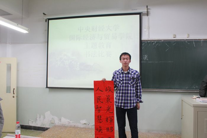 2011年11月16日晚上7点,由公司主办的“学党史、知党情、跟党走”主题教育活动之“红心向党,快乐成长”书法比赛在主教110教室举行。活动紧扣红色足迹这一主线,让同学们从书法中深刻体会党的历史文化。活动当天,参赛选手们都早早到达指定地点,铺好纸、研好墨,做好准备工作,准备一显身手。 活动首先由主持人对中国书法的历史做了简短的介绍,营造出现场舞文弄墨,轻松而又惬意的氛围,把现场的观众和选手都带入了书法博大精深源远流长的历史当中去。随着优雅古典的乐声想起,比赛正式开始,教室里的喧哗声一点点消失,唯有音乐声伴随,那些风格各异,求度追韵的文字偶尔不禁吸引住工作人员和评委们的驻足欣赏。在书写作品的30分钟里,参赛者挥毫泼墨,神情专注。